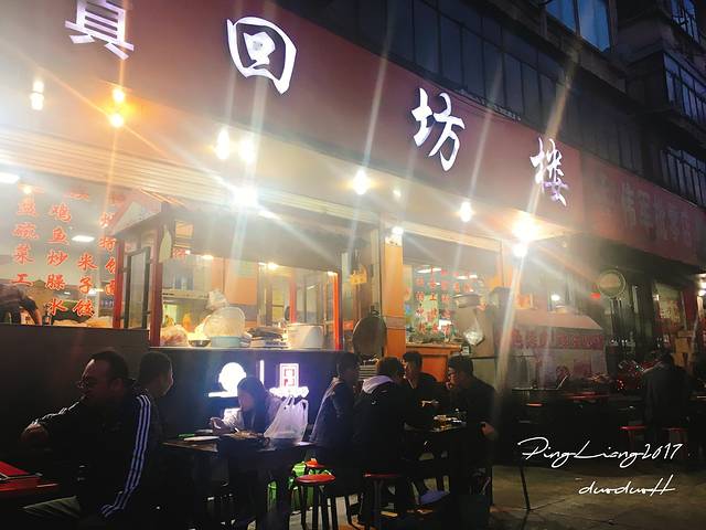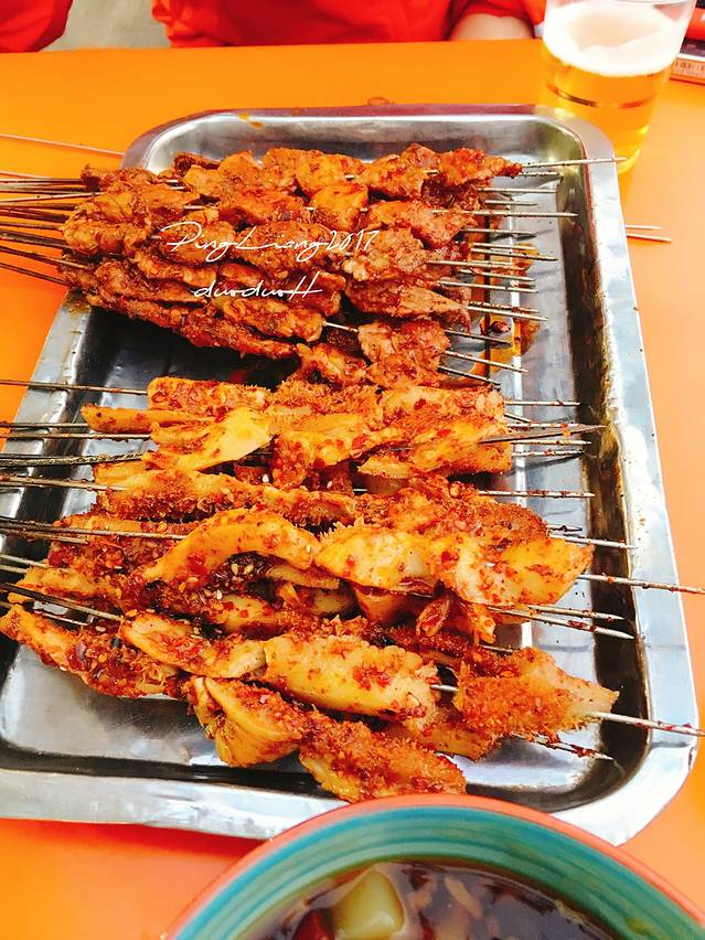 走了一下午,腿酸的不行,回酒店休息了一小时就去找吃的了,因为陕西有回民街,经常去吃所以吃的上面差的也不是很多,牛肉拉面早上已经吃过了,晚上就吃个烤肉吧!走过两条街来到平凉的闹市区,路边都是饭馆,这边大都是回民,饭馆也满是清真的,找了一条都是烤肉的小街道,就这家回坊楼店里和门口都坐满了人,想想觉得味道应该不错,而且也很久没去回民街吃这些东西了,满街的烤肉香勾起了我俩的食欲,赶紧要了吃的补充补充体力。
