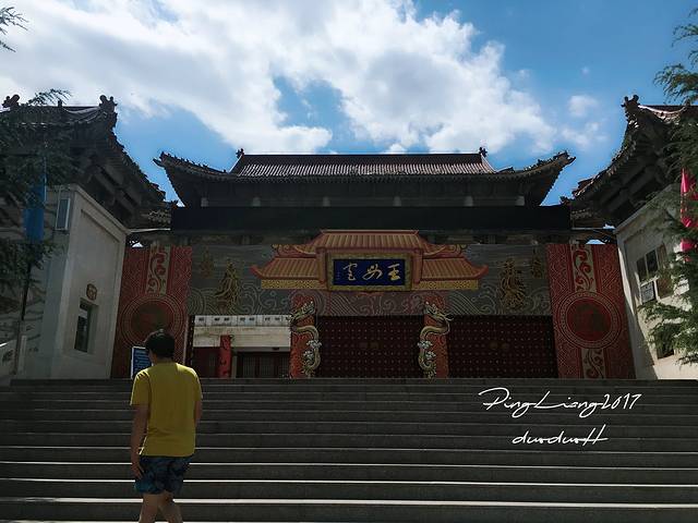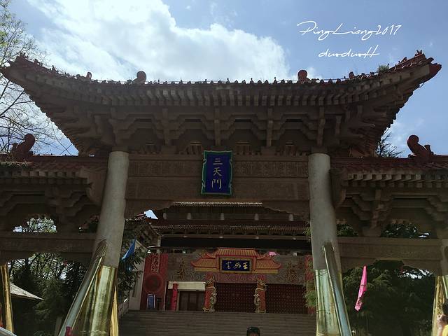 出了王母宫石窟的大门旁边有一个牌楼写这一天门,从这里直上去,经过二天门后来到三天门就到了王母宫的门口了。进去转了转也不算大,在上面可以看到旁边的凌霄塔。