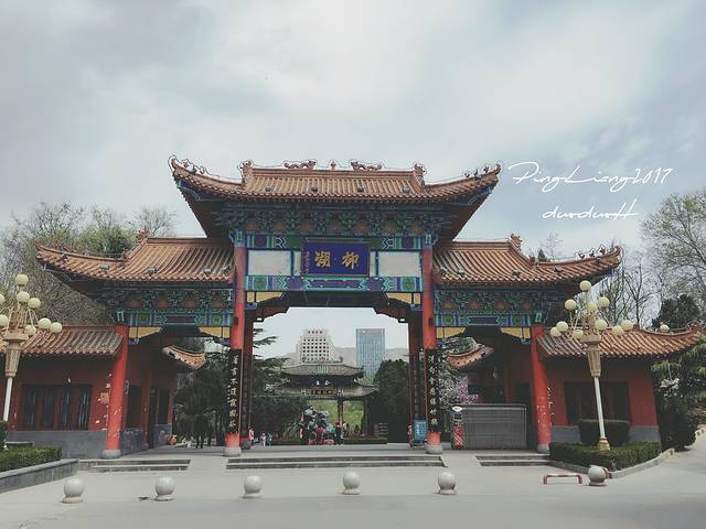 因为昨天爬山有点累,今天睡了个自然醒,起来后研究了下今天早上再去哪转转,最后选择了不远的柳湖公园,感受下当地人的慢生活。收拾了东西退了房出发已经是十点了,所以出去玩出门的标准就是十点吗~感觉每天都是十点以后才活动起来。公园离我们住的地方也不远,开车五分钟就到,跟着导航拐进一条小路,走到头没有路就是公园大门了,开始还以为走错了呢。不过去玩的人还是蛮多的,里面有孩子玩的小游乐设施,对于我们来说就是看一看转一圈~公园总体不大,但是也是平凉人们生活的一部分。
