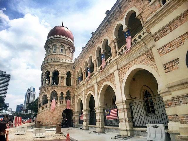 l love kl--独立广场--经过苏丹亚都沙末大厦和圣玛丽教堂到英雄纪念碑,拐进湖滨公园,经过伊斯兰教博物馆和国家清真寺,出来就是老火车站