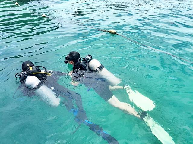 宝宝第一次的浮潜给了泰国,这次真的是第一次深潜,而巧的是,我们这一行全是都是初次深潜,因而教练只能一个一个把船上的人拉下去深潜十几分钟;