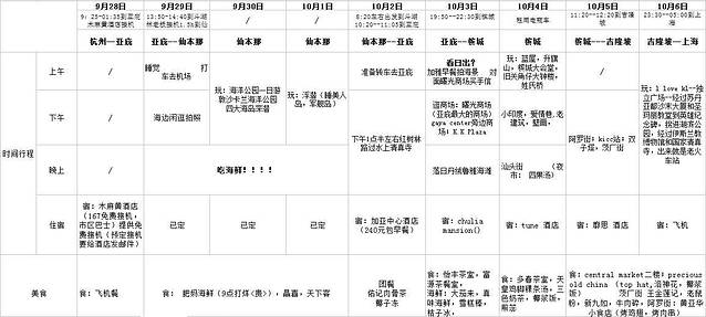 最后,给大家一个福利,附上宝宝国庆仙本那--沙巴--槟城--吉隆坡四城8日游的计划表!!!(点开可放大哦)