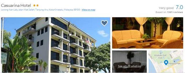 因为是先定的杭州到亚庇的机票,晚上到亚庇已经是一点多了,第二天中午又要飞斗湖去仙本那,所以我们选择了离亚庇机场很近的一家木麻黄酒店,适合周转时间短的旅客