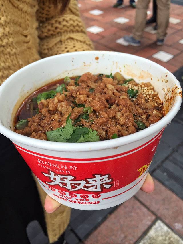 Day3:最后一天没有安排什么景点就是转转吃吃买买,先去吃了个花市碗杂面,真心超级超级好吃,还有那个好又来酸辣粉,感觉路上人手一碗,红麻抄手也好吃然后就是山城汤圆(表示一般般很普通),酸奶牛真的排队可以排半小时,感觉味道吧也很一般,接着就去买了一些火锅料,我们没有买特产店的,而是我们这几天吃的火锅店里的火锅料,在走之前去吃了那个朱氏胖子烂火锅,其实就是个苍蝇馆子,因为是中午人很少,晚上的话最起码得排2个小时队,吃了三顿火锅和一顿串串,发现重庆火锅都是一个味都挺好吃的,所以建议大家不用专门去找哪家,把时间耗在排队上,因为随便哪家都很好吃