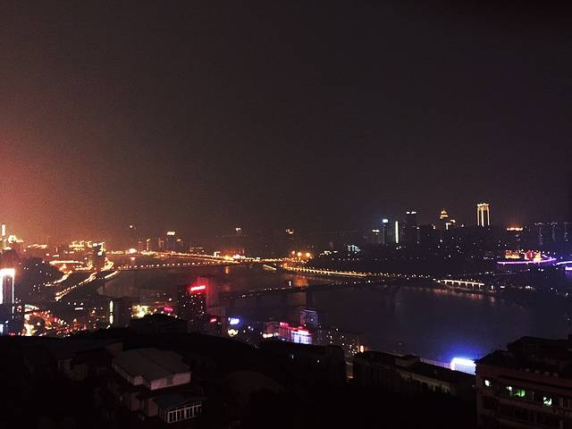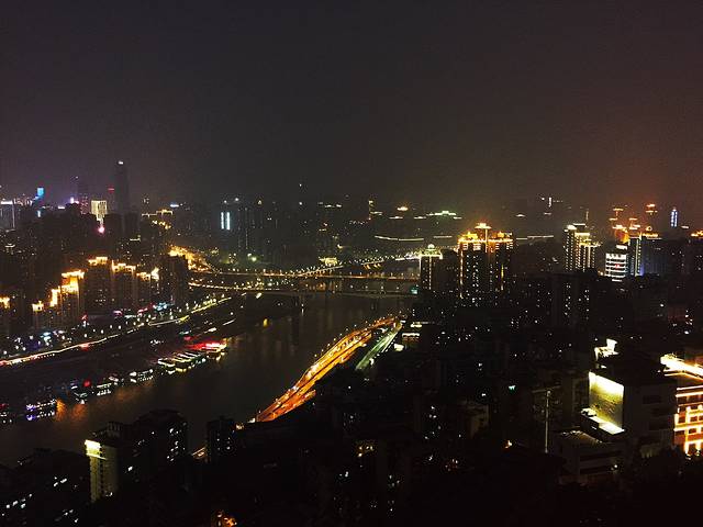 接着我们就向鹅岭公园粗发,这个公园是免费的,所以有很多爷爷奶奶叔叔阿姨在这里打牌唱歌跳广场舞,一直往顶上爬就会有惊喜,Mimo发现重庆人都胆子特别大,不恐高(连爷爷奶奶们都趴到山边边的栈道上看风景,Mimo都是扶着栏杆还不敢太往边站看的,瞬间觉得好怂)花5元门票上塔可以俯瞰整个重庆夜景,而且可以看到“从你的全世界路过”那个电台,重庆最美的夜景不在南山一棵树而是在峨岭,不过塔上风真的很大,为拍个夜景Mimo简直一把鼻涕一把泪的