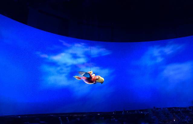 在观看过程中,头顶还会有一只大型的巨鸟突然从屏幕中“飞出”,“嗖”一下从3米处高空飞过,使我们有种在现实中穿越进去的感觉!
