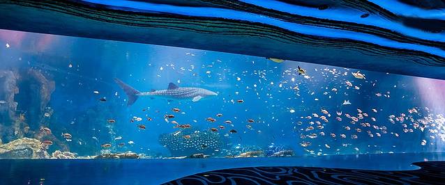 高达8.3米、长39.6米的玻璃观赏屏采用世界上至大的亚加力玻璃,加上先进的无缝连接技术,为您带来最壮阔的视觉享受,欣赏极致的海底奇观!除了有世界上至大的鱼类之一的鲸鲨,更有直径达4米长的魔鬼鱼和海龟等珍奇鱼类多达15,000条。