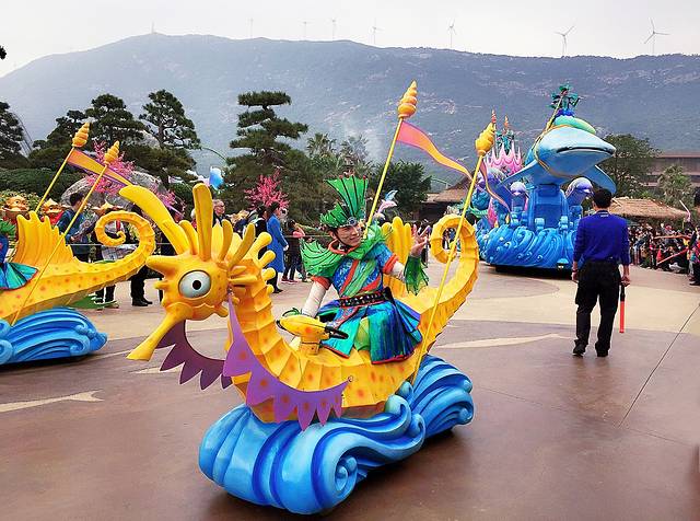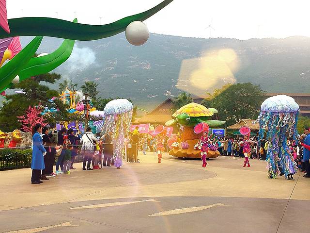 我们第一天的计划是:先在园区的海洋大街解决了午餐,再重点先去看剧场表演和海洋大巡游,然后再穿插些游乐设施,回酒店休息一下,最后去看全新大马戏《秘境奇技》。