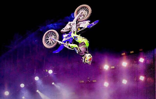 在有限的舞台里,上演着一项极具危险性的高难度空中摩托车表演……