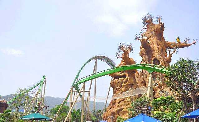鹦鹉过山车横穿整个雨林飞翔,让你穿越整个热带雨林的丛林、湖泊、山谷,感受着瞬间的离心力、垂吊式360度翻转,体验一次不一样的刺激感受!