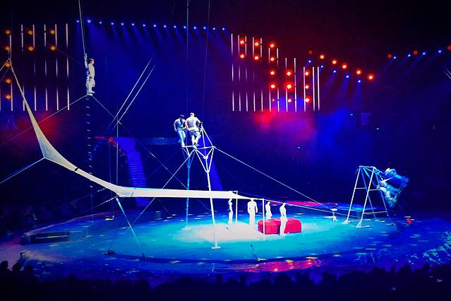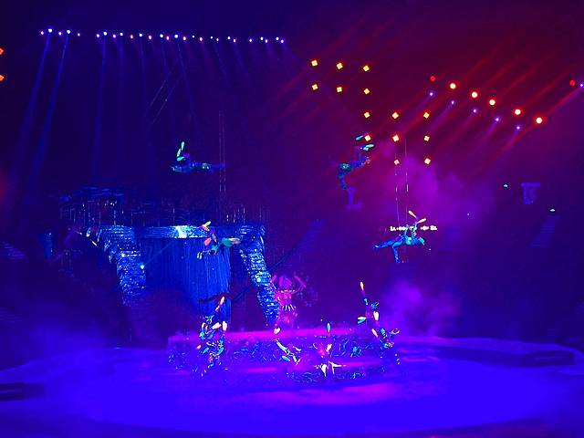 在这120分钟的惊险表演中,充分展现了人类对空间、装置、飞翔、平衡、默契、灵活、幽默、服饰、乐器、光影……想象力。
