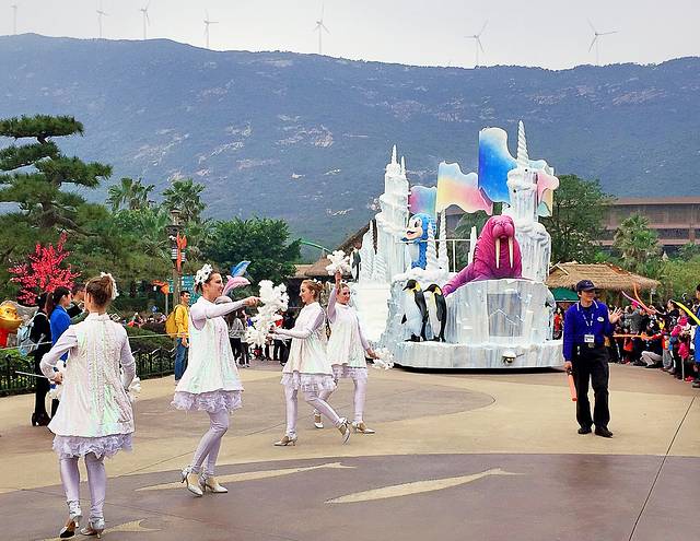 【极地探险】将会带您进入神秘的南北两极,或是到「白鲸剧场」欣赏精彩绝伦的演出,还能乘坐「冰山过山车」上天入海的乐趣!