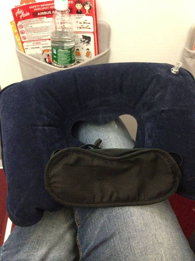 广州飞亚庇的航班是夜间的,凌晨12点起飞,3点05分到亚庇,所以类,麻麻给我准备了这个。我其实很后悔买了座位,呃,因为机上人超级少,现在是沙巴旅行的淡季,所以游客没有那么多。