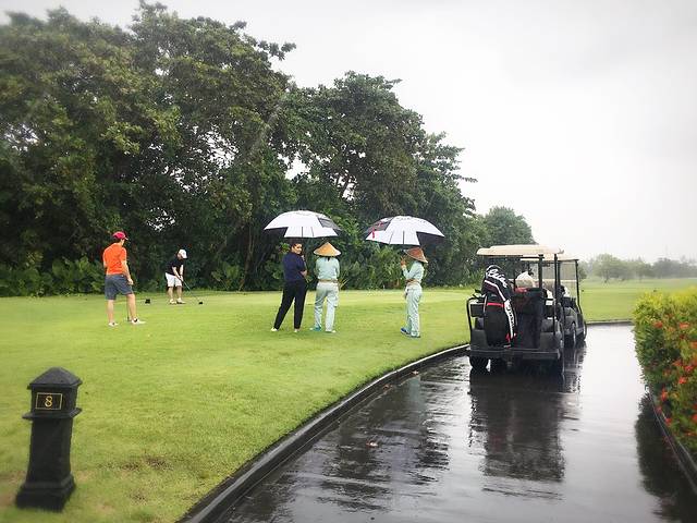 今天没有安排什么行程…因为要换去泛太平洋酒店了…泛太平洋酒店被称为巴厘岛占地最大的酒店,且自带18洞高尔夫球场的,600多一晚,性价比超高…当时预定时便是为了方便我这小白球的铁杆爱好者…心想着可以去挥两杆…所以我们中午便出发去酒店了…可谁知,上天给了我们别样的浪漫,暴雨连天…打球是不可能了…唯有看看雨中的浪漫了