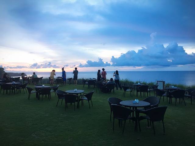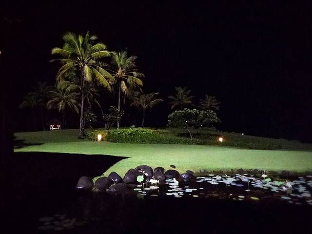 暴雨直至夜幕降临才停歇…泛太平洋酒店不愧是占地最大的酒店,餐厅也非常大,环境优雅…我很老公在室外球场边简单吃了一顿晚餐…雨后的球场更葱翠、空气更清新