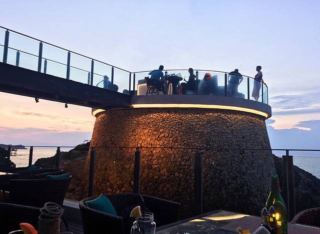 婚纱照拍摄结束,我们便驱车前往了吴奇隆与刘诗诗的结婚圣地,Ayada Resort and Spa hotel就餐…阿雅娜酒店以梵文“避难所”而命名,犹如人间仙境、世外桃源,果然名不虚传…酒店内的Rock Bar,更是令人惊艳!!Rock Bar被CNN评为全世界最美的落日酒吧也是全世界十大酒吧之一,对外开放,到酒吧需要做小型的缆车,很高逼格的感觉…