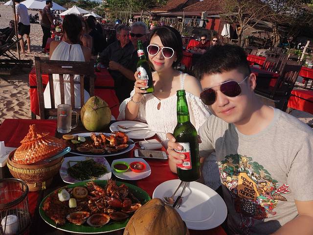 我跟老公选择的座位最低消费300RMB…真心觉得巴厘岛消费不高…很多菜品我跟老公都是点的双份,最后才花了400多人民币…味道也很不错…只是我们来的时候,有些晚了…没能看到绝美的落日…