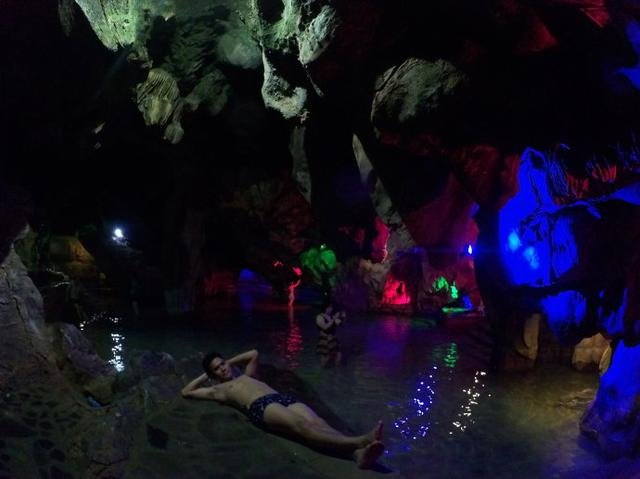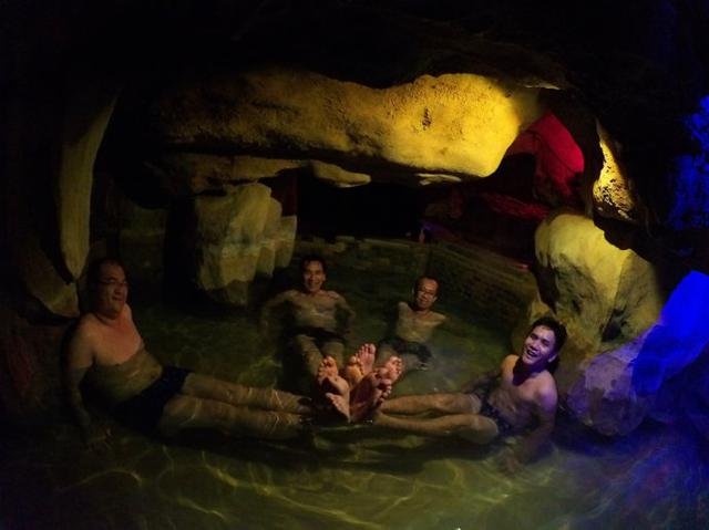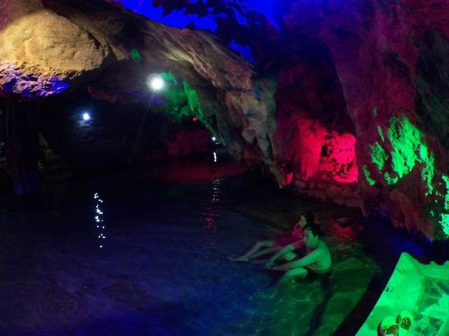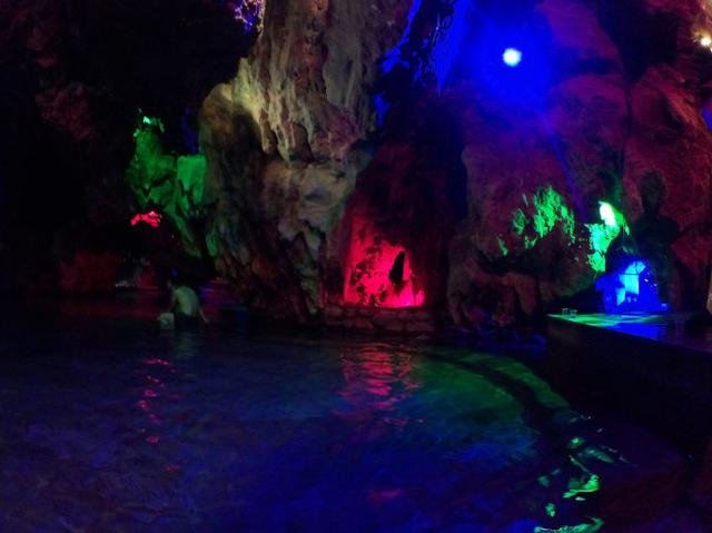 温泉泡过很多,但在溶洞里泡温泉还是头一回,因为是夏天,还在考虑要不要泡温泉,吃完晚餐后休息一会去走走,一进入溶洞温泉后就无法自拔地喜欢上,像是电影里的梦幻场景,像西游记里的女儿国,像在梦里。温泉的水不热,在这里泡温泉,一种极致的享受。
