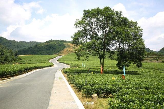 秀美的茶园风光,一条路蜿蜒向前方。
