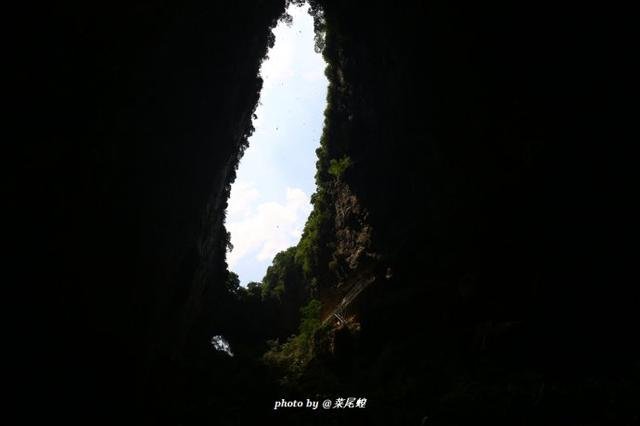 船停在码头后,回头看洞中,仿佛一个漏斗一样,这样的溶洞经过成千上万的变迁,形成了一个大天坑。和重庆武隆,广西百色乐业位于前三名。