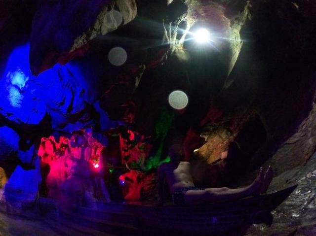 洞天仙境是本次行程是最为奇特的景观,乘船进入洞内,洞中有河,洞外有天,洞口的形状好像台湾的地图,也像一个感叹号,洞内还有玻璃栈道,穿过洞后,还有世外桃源般的世界,有山,有水,有桥,有竹,有别墅,有温泉,别有洞天,有如仙境一般。