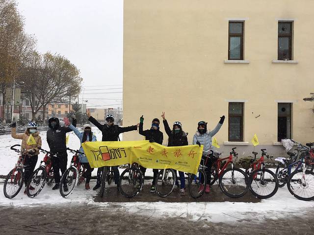 然后在门口合影出发