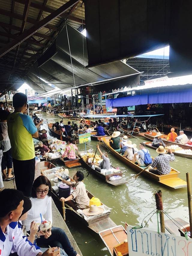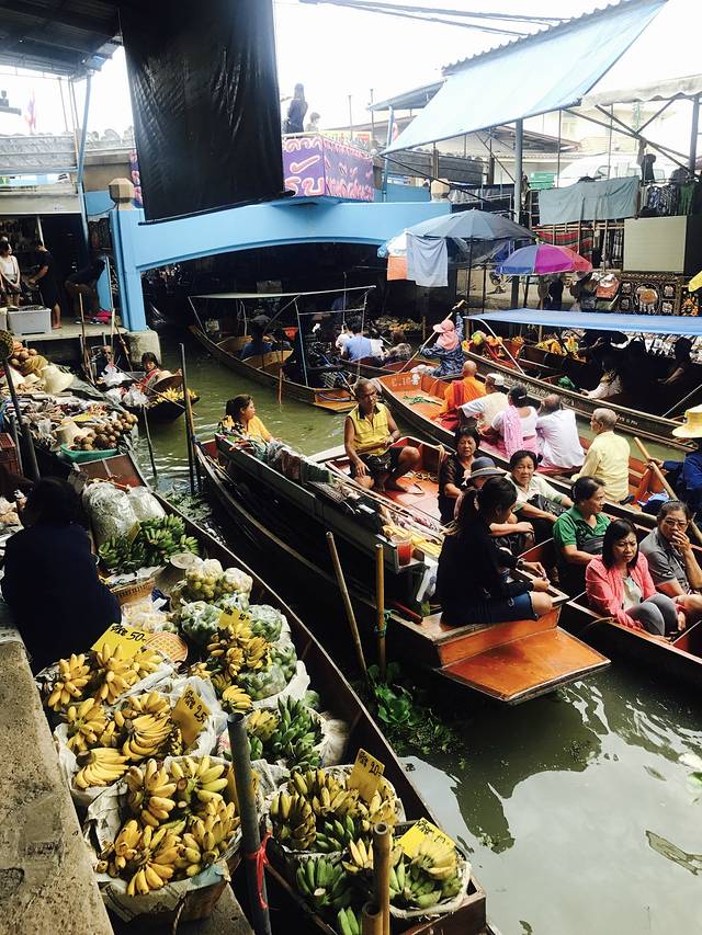 上次来曼谷我们只报了一个水上市场,这次还包含了一个美攻火车市场,价格125元人民币。水上市场就像我们这边的传统菜市场,说真的有点脏,里面有卖水果、衣服、装饰品和吃的,火车市场那就是纯菜市场了,可以买水果吃,很便宜,也有小吃店。