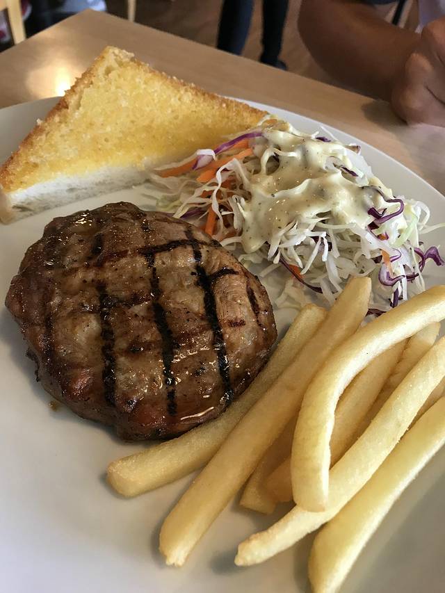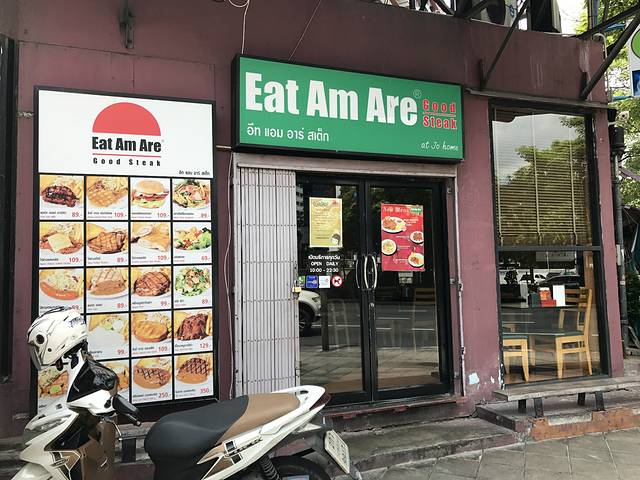 这家牛排店叫【Eat Am Are】,我个人比较推荐哈,因为泰国的主要肉食是鸡肉,作为外国人还是有点不习惯,这家店有鸡排、猪排和牛排,鸡排最便宜、牛排最贵,一个套餐也是很划算的,最贵的牛排套餐好像是300多泰铢,折合人民币大概六七十块钱,味道也不错!