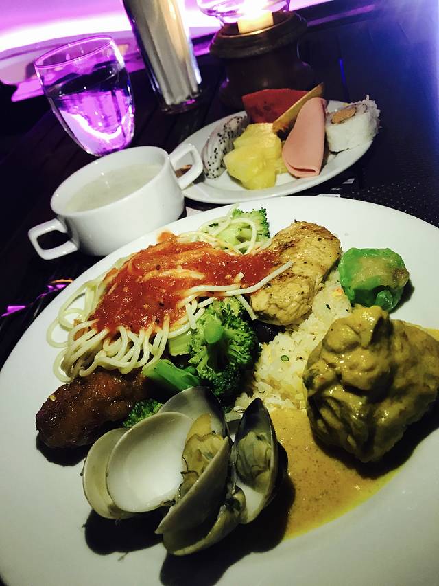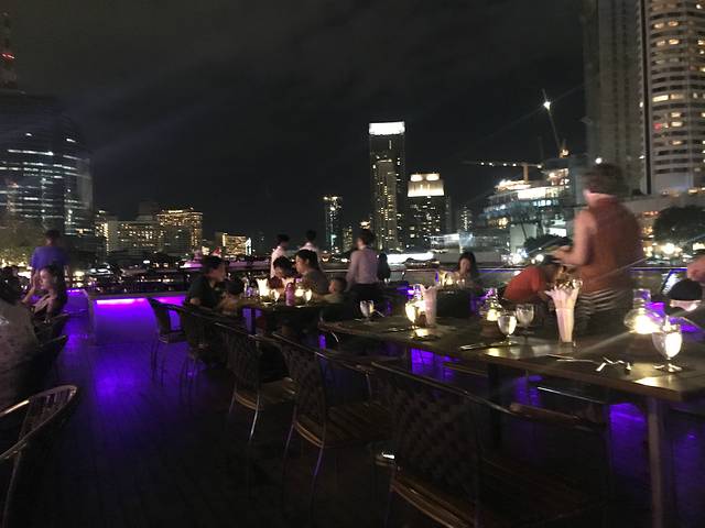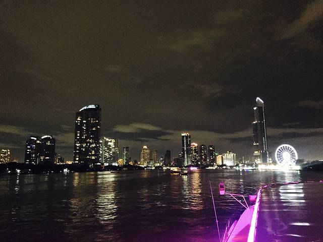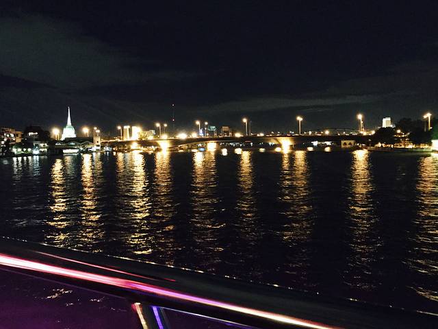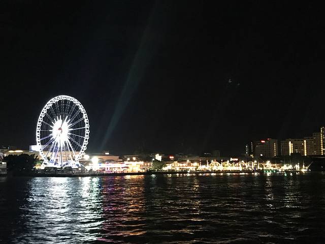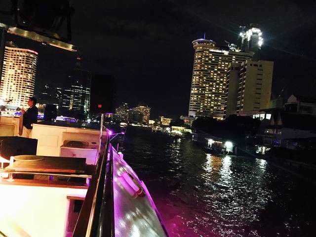 湄南河的夜景真的,不如成都的府南河……唯一的看点是那个摩天轮夜市,不知道是不是他们国丧的原因,很少有霓虹灯,就算有也是很单一的黄色,而且自助餐还不好吃,没什么海鲜……
