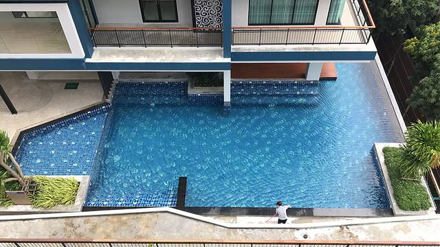 过了一座桥就到酒店了,迅速办了入住手续,工作人员很热情,请记得每天早上出门前20泰铢的小费留在房间里。酒店有餐厅,但是我们订的房间类型是不提供早餐的,出酒店左转,巷子口是一家艺术酒店,出巷子再左转,大概几百米会有一家假日酒店,那有麦当劳和711,搭乘BTS(轻轨)和去暹罗中心逛街的话也是往那个方向走。