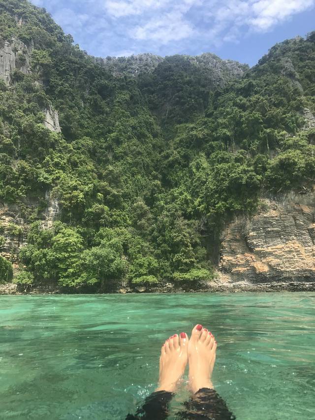 午餐是在大PP岛,太阳很大、很晒,拍照很漂亮。我全程下水都穿了水母服,LG是短裤,也不擦防晒霜,回来直接晒伤……家里有小朋友和老人的,可以直接将住宿酒店订PP岛上,就在酒店玩,省时省力。