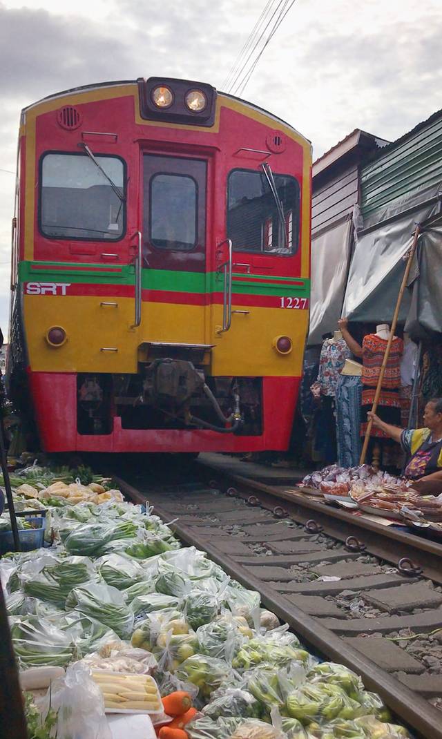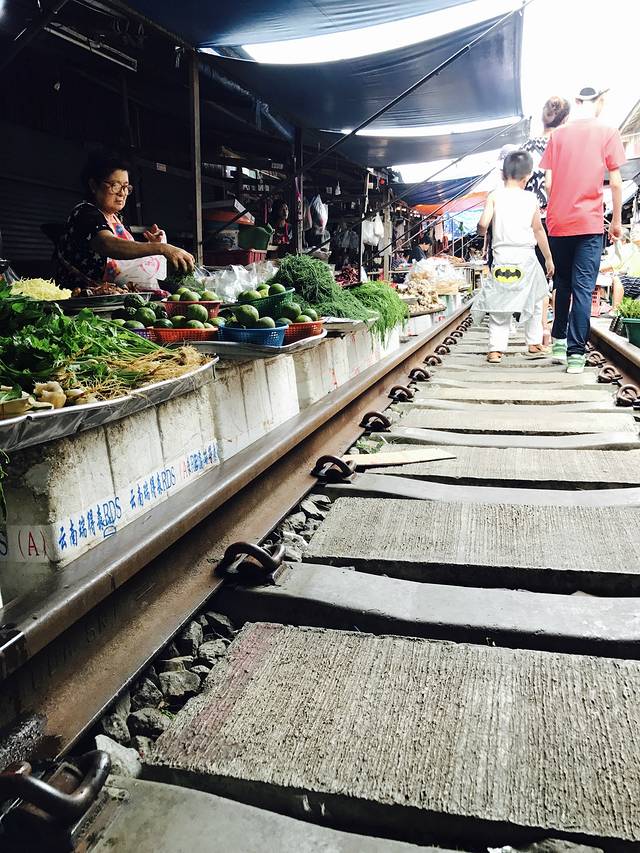 早上6点多,司机和导游就会来酒店接人,大概要开一个多小时,请注意提前去洗手间,特别是回程,正值曼谷下班高峰,堵车~中途司机是不会停车的。首先会去美攻火车市场,到了停车场以后导游会告诉你去哪里看火车以及火车几点会来、洗手间的位置、结束后在哪集合上车等信息,一定要自己看好时间,不然会错过火车。由于就在铁道上看,周围又全是小商贩,人也很多,虽然火车进站会开的很慢很慢,但是一定要注意安全,特别是带小孩的。