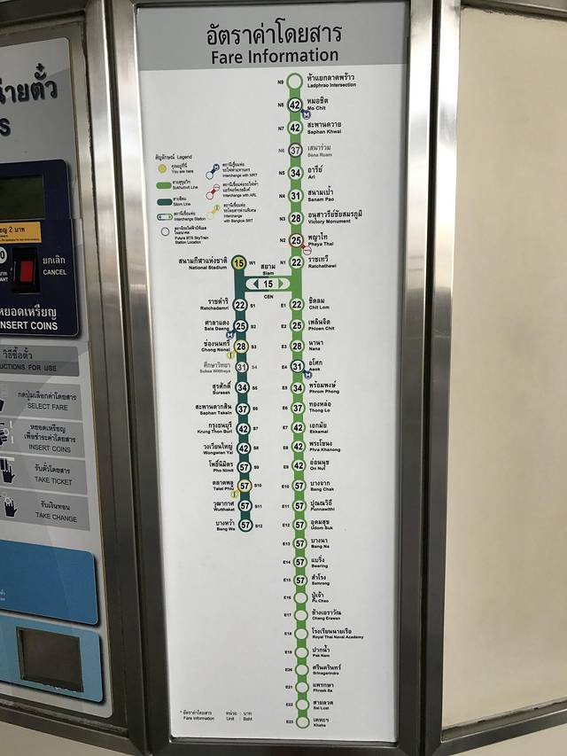 BTS比成都地铁贵,下图二每一站的数字就是票价,买票需自备硬币。