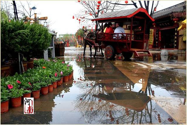 拍了一个小时左右,风越来越大,雨也越来越大,于是大家又回到酒店休整。傍晚的时候在酒店吃了午饭之后,就一起出发去了开封小宋城。