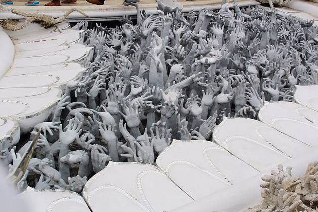 白庙是天堂的化身,所以进入白庙需要脱鞋,而进入白庙的两边你会看到很多伸出来的手,那是地狱之手,一旦有了邪念便将你拉入地狱