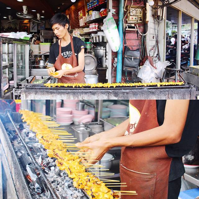 水门鸡饭真的没有喂饱我,到处瞅有什么新鲜的好吃的,果然在水门鸡饭往回走的街口看到了烤咖喱鸡肉串,看着太有食欲了,60B十串