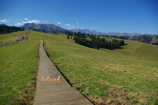 江布拉克系哈萨克语,意为“圣水之源”,位于天山山脉东段博格达山北麓,万亩立体麦田、五花草甸、雪岭云杉、博格达山构成了一幅幅美丽的画卷,《江布拉克之歌》中唱到“江布拉克美如画,天上人间一步跨”! 仲秋时节,收割后的万亩立体麦田只剩下金黄的麦秆,五花草甸的草也抽出了穗儿,雪岭云杉依然苍翠,博格达山如此挺拔,遥想风吹金色麦浪的辽阔,各色野花遍布草甸的美丽,搭配蓝天白云、绿树雪山,岂不壮哉!夏季牧场的喧嚣已经过去,虽然没有那样的生机勃勃,却留下了一份值得品味的静谧,走上柔软的木栈道,穿行在草原和树林之间,随着地势的斗转起伏,享受着移步换景的畅快,定格着一个个画框,呈现出美妙图画!江布拉克真的很美,这就是我心目中的新疆美丽画卷之一,带着愉悦走在这木栈道上,前方的路一眼望不出多远,就有了一份对未知的憧憬,心情愈加急切起来,用健步如飞来形容也毫不夸张,回首来时的路,心中又多了一份淡定和从容,人生亦是如此,带着一颗憧憬的心,踏实的走好每一步,回首无憾、活在当下、直面未来!