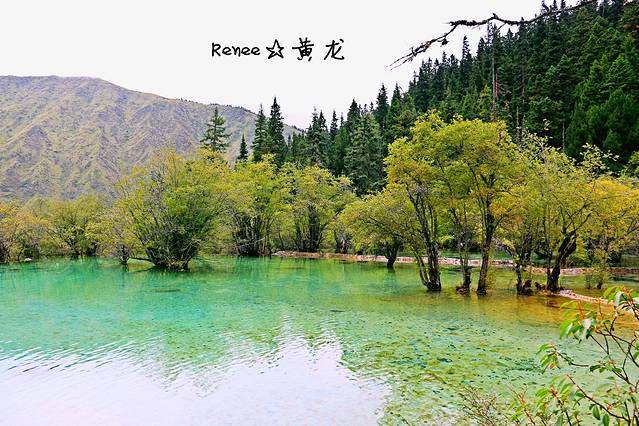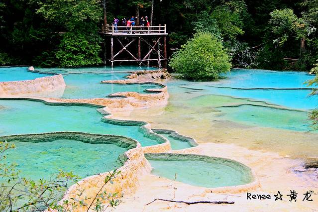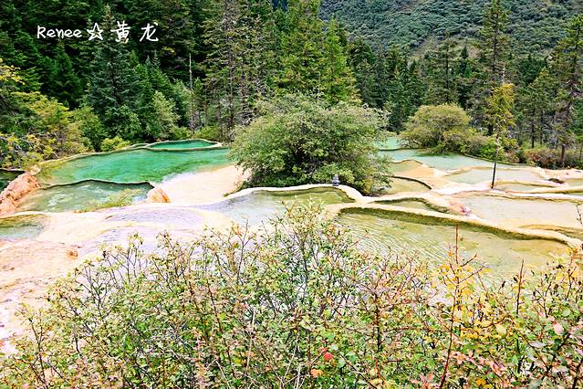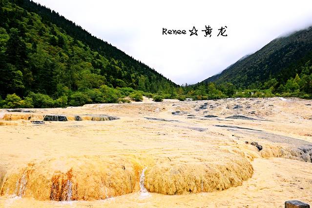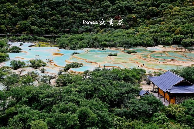 我理解的黄龙,两山间一条长长金黄的钙化带,就像卧在山间的一条黄色巨龙,美丽的彩池就是黄龙身上最美的鳞片!