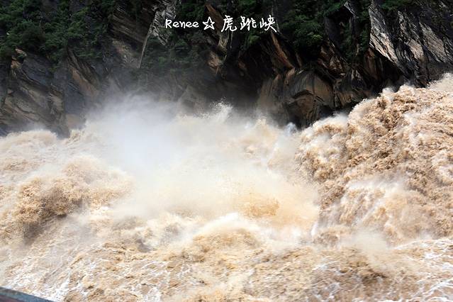 在逛独克宗古城时,看见有散客拼团 香格里拉-虎跳峡-丽江,180元一个人,包括虎跳峡门票,商务车。我们就报了这个团,挺好,这就不用想怎么换车到虎跳峡了。一路上除了虎跳峡,司机师傅也会在香格里拉大峡谷和长江第一湾停车。只不过经过香格里拉大峡谷时雾很大,什么都看不见司机一早来客栈接我们。大概中午到了虎跳峡,原本就是想既然经过就顺道看看,还好来了,没有错过这波涛澎湃的虎跳峡