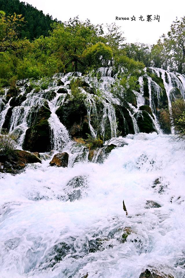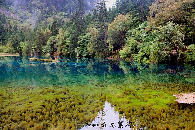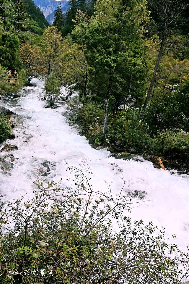 先来说说路线,九寨沟是Y形,进了沟坐车先去右枝,箭竹海下车,一路走践桥直到珍珠滩。到得早,选择走践桥的人不多,大多数人都是选择下车观景台拍照所以我觉得十分惬意走在践桥上偶尔看见对面观景台密密麻麻的人群,心中不禁美滋滋的。有种我们身在世外桃源,而对面的人们在凡间羡慕嫉妒恨地看这我们但到了珍珠滩瀑布,就避无可避了珍珠滩到镜海有一段距离,节省时间和体力,我们选择坐车,没办法,回到凡间,加入下车拍照的队伍。感叹梦醒得太快!游完镜海,右枝也就结束了。需要从镜海坐车去诺日朗中心,换另一条线的班车去长海,也就是左枝,其实左枝只有两个景点长海和五彩池,上季节海和下季节海是季节性的,九月是干枯的季节。车到长海,走到五彩池,再从五彩池坐车回到诺日朗中心,换车去犀牛海,途中在车上看到诺日朗瀑布,没下车,直接去了犀牛海。我们从犀牛海一路走到双龙海,最后还有芦苇海和盆景海没去,一是一早坐车看见了,感觉一般;二来没劲了走不动了这条线除了到树正瀑布很多人,其它地方人不多还好。