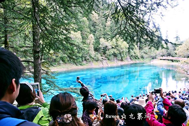 五彩池前密密麻麻的人潮,但五彩池确实让人无比惊叹。