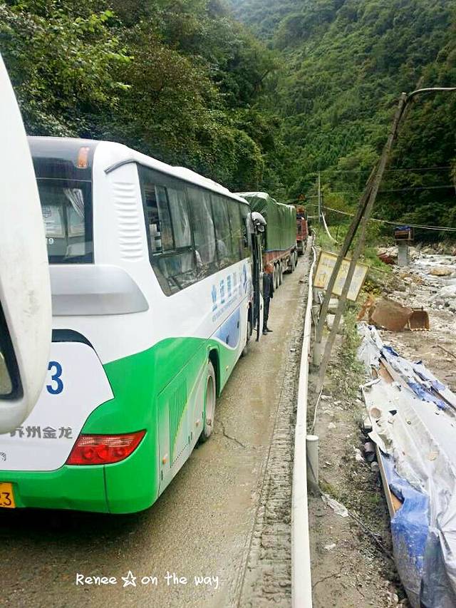 一早起身退房,去新南门汽车站坐班车去九寨沟,坐了整整一天的车,应该九个小时。一路上随处可见5.12地震的痕迹。在经过一个水库时,其中一位司机说,以前很多人都喜欢来这钓鱼,地震发生时几乎岸边所有的人一瞬间都消失了,司机师傅还说,他也是灾区的人,还谢谢车上曾经为灾区捐款的人。听了这些话,看着窗外关于5.12的种种,有些伤感,感叹生命的脆弱。