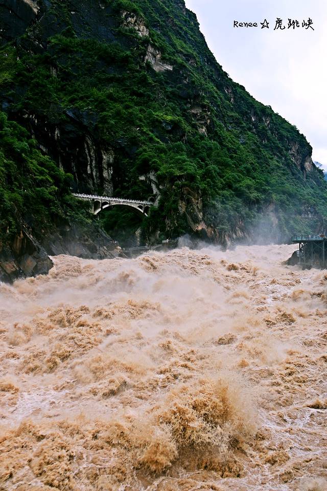 在虎跳峡,司机让我们看丽江那边践桥上有一条约隐约可见的小路,那是丽江木府凭一己之利在悬崖峭壁上凿出的一条路,只有木府马帮才可以使用,大大缩短了丽江到拉市海的时间。就这一条路想象一下曾经的木府。对于木府我完全陌生,只是在查攻略时知道丽江有个木府。到丽江得好好去木府参观一下。