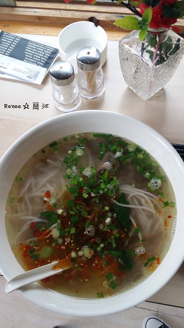 先吃早餐,美好的一天从一顿美味的早餐开始!就在木府旁边,依然老板娘推荐,唐会牛肉米线+烧饼