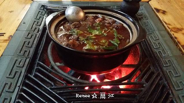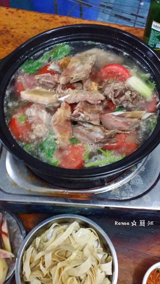晚上,老板娘介绍我们去吃火塘牛肉,在古城外。太好吃了