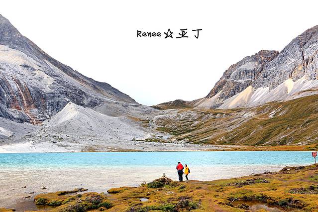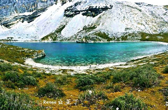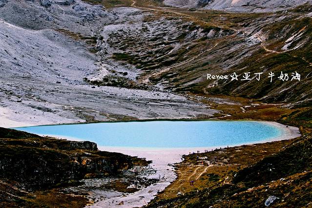 到了景区,先坐电瓶车到绒洛牛场,然后开始徒步爬山,爬山的路不是一般难走啊,水路,泥路,悬崖边,有一段路选择骑马上山的朋友也要下马步行,可见,多么不好走。一路没有拍照,专心爬山,爬了差不多四个小时,终于到达亚丁之行最终目的地-牛奶海,仿佛一块碧玉镶嵌在雪山之中。