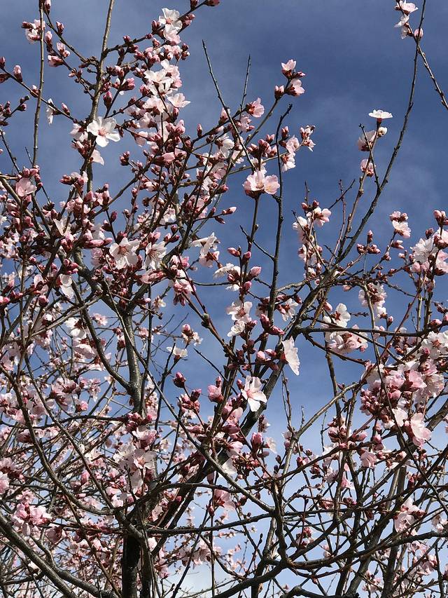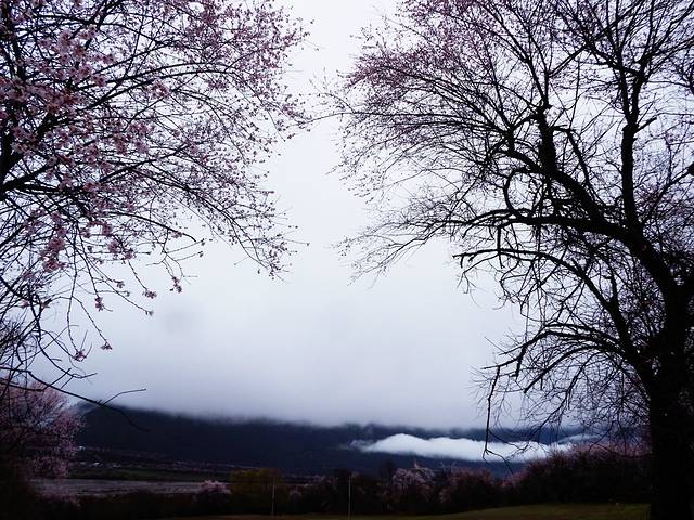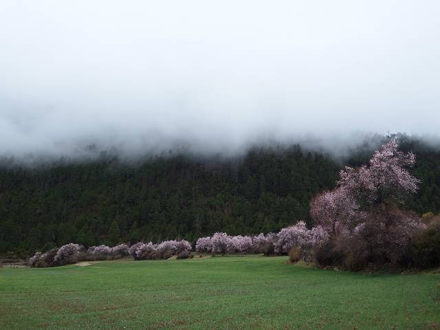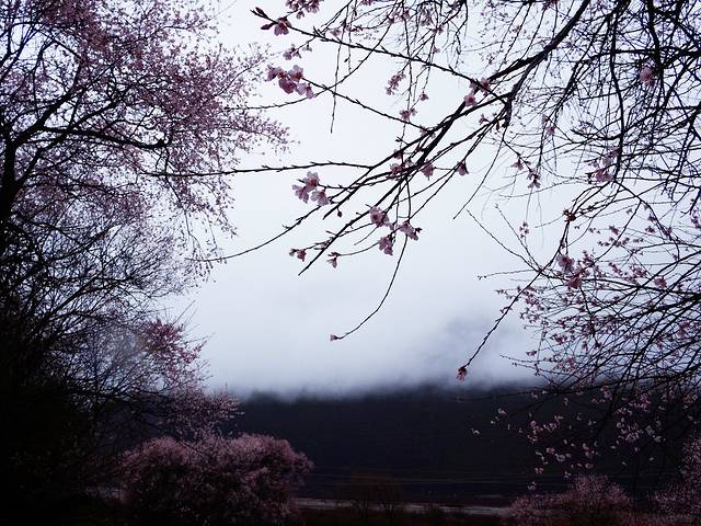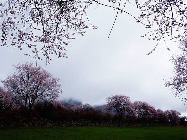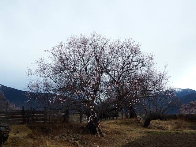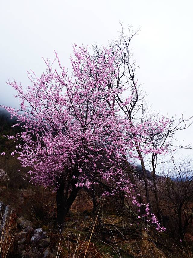 高原桃花多数以粉白为主,这是看过所有桃花中颜色最鲜艳的一株,它是粉红色的。
