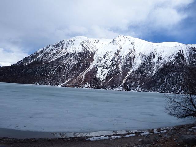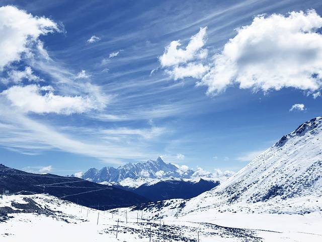 早上的拉萨还在下着大雪,汽车沿着盘山公路上行,窗外由开始的平淡变得炫目起来,悬崖和沟壑忽左忽右地变幻,心也随之漂浮起来。终于到达岗巴拉山口,一处海拔5030米的地方。漫步山岗,剌骨的寒风呼呼地刮着,裹紧身子,看见流云在脚下穿梭,玛尼堆、经幡阵变得更加神秘,如梦如幻,有一种天上人间的韵味。不一会儿山谷间出现一抹辽阔且望不到边的深蓝,远处峻峭的宁金抗沙峰直插云霄,皑皑的雪峰在阳光照射下呈一片金色。羊湖如蓝色的宝石镶嵌在山峦间,连天空都不及它壮美......