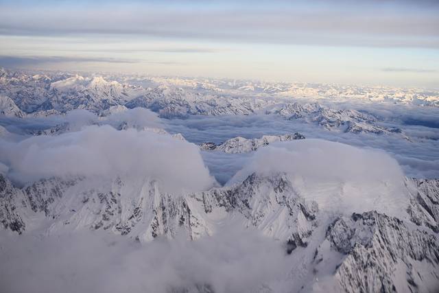 飞机起飞45分钟后,窗外的雪山浮在云海之上,异常壮观....机舱内传来各种快门“咔咔咔”,根本坐不住,场面尤为壮观...