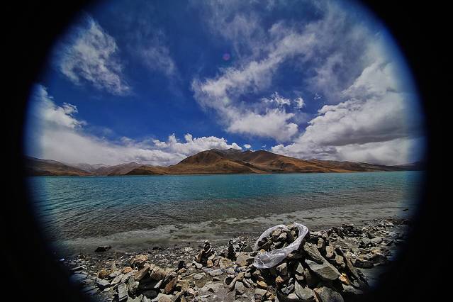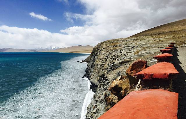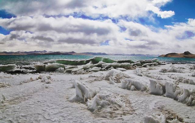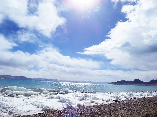 风,微微荡起。浪,便一层层袭来。即便是再晴朗的日子,高原的荒野之风都会卷起巨浪。普莫雍错就如同大海一样,这是一幅完全狂野的画面。当翻滚的巨浪不在时,平静的湖水就像是专为蓝天准备的镜子。海天一色,在这一刻就是最好的诠释。雪域高原的天空,无时无刻不展示着它最美的蓝。 阳光撒在湖面,让你不敢眨眼,不,是美得让你不忍眨眼。
